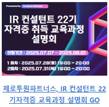 ▪️제로투원파트너스 22기 IR컨설턴트 자격증 교육과정 설명회 👉 GO