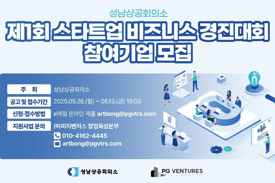창업 5년 미만 경기도 스타트업 대상 7개월간 맞춤형 액셀러레이팅 프로그램 제공 [제로투원미디어] 성남상공회의소가 경기남부 창업생태계 활성화를 위한 첫 번째 스타트업 비즈니스 경진대회를 개최한다고 26일 발표했다. 이번 경진대회는 성남상공회의소가 주최하고 오픈이노베이션 전문 액셀러레이터 (주)피지벤처스가 운영을 맡아 진행된다. 공모 접수는 5월 26일부터 6월 […]