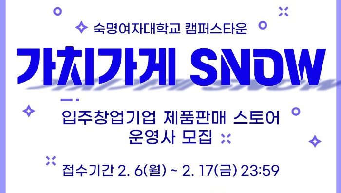 숙명여자대학교 캠퍼스타운사업단에서 우수한 아이디어를 가진 창업 인재를 발굴하고 역량 있는 지역 창업기업으로 육성하기 위해 […]